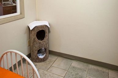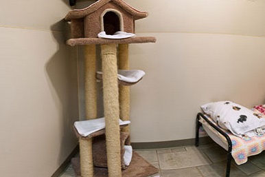 - The Executive Family Suites are the only area where dogs and cats of the same family can board together. If a dog and cat are boarding together, the cat condo is added so that the dog does not eat the cat food and the cat can get some rest once in a while.