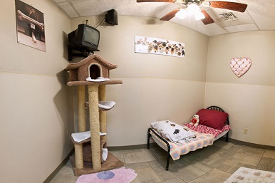 We are more than a pet hotel, we are a pet resort. We have four executive suites for those families whose pets are the primary residents of the household. These home like pet lodge rooms come complete with toddler bed, bedding, rug and TV.